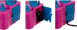 Je vybavena dvěma tryskami pro současné nafukování dvou balónků, což výrazně šetří čas a úsilí během příprav. Praktický úložný prostor pro kabel a přenositelný design díky rukojeti činí pumpu ideálním společníkem pro každého organizátora událostí.
