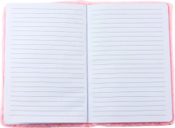 Měkký plyšový obal dává zápisníku nejen vizuální přitažlivost, ale i příjemný dotek.