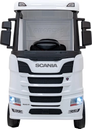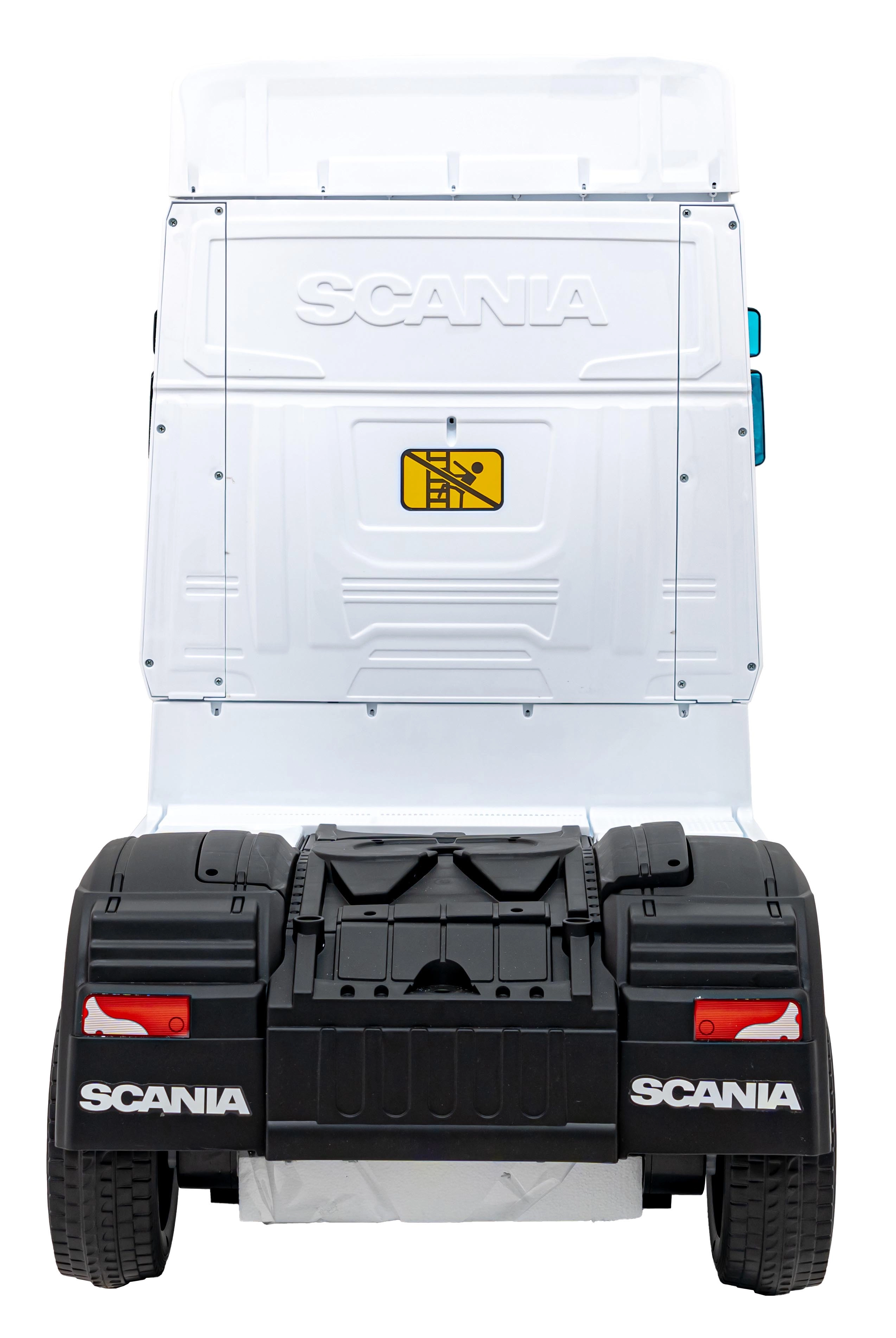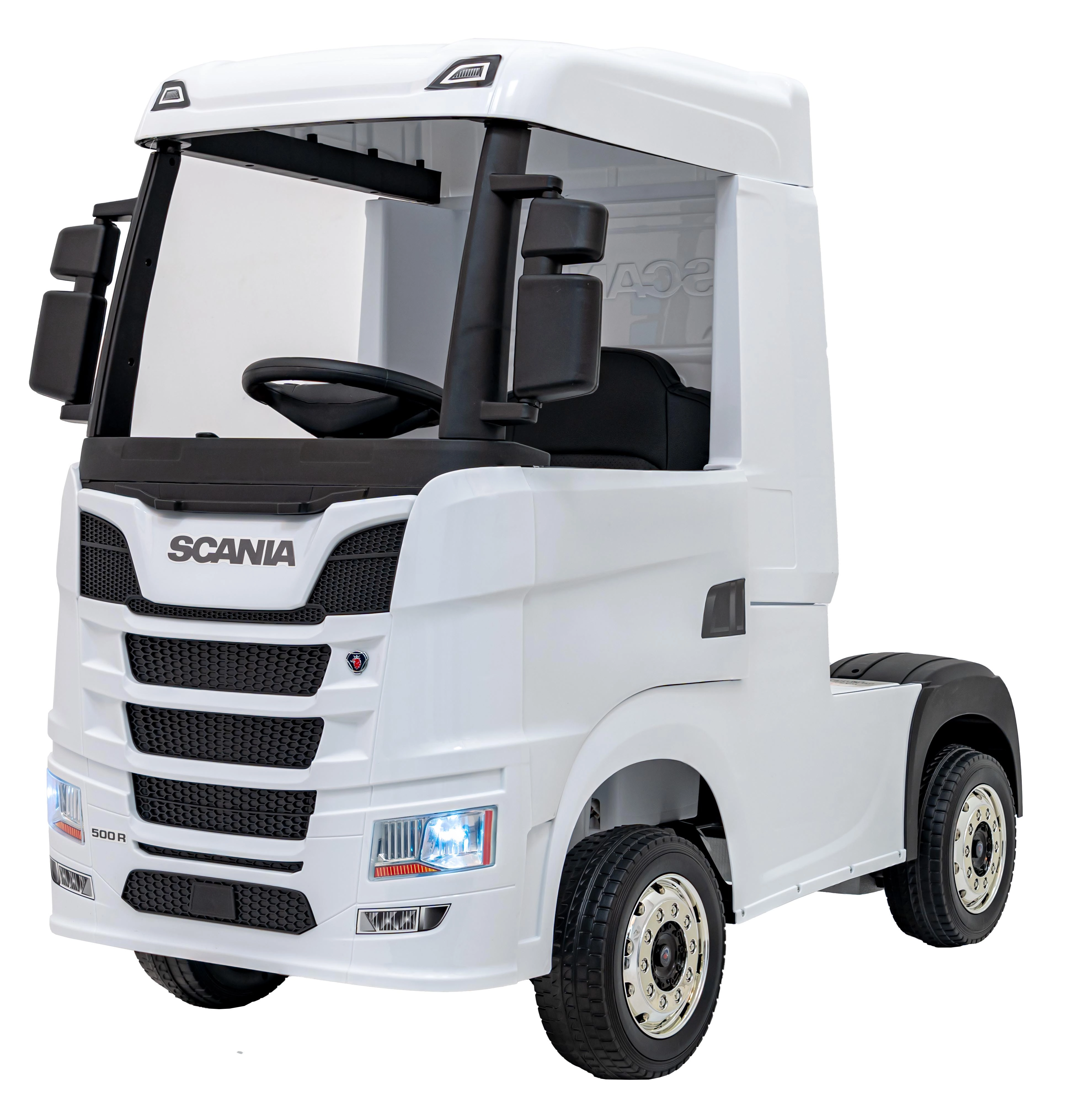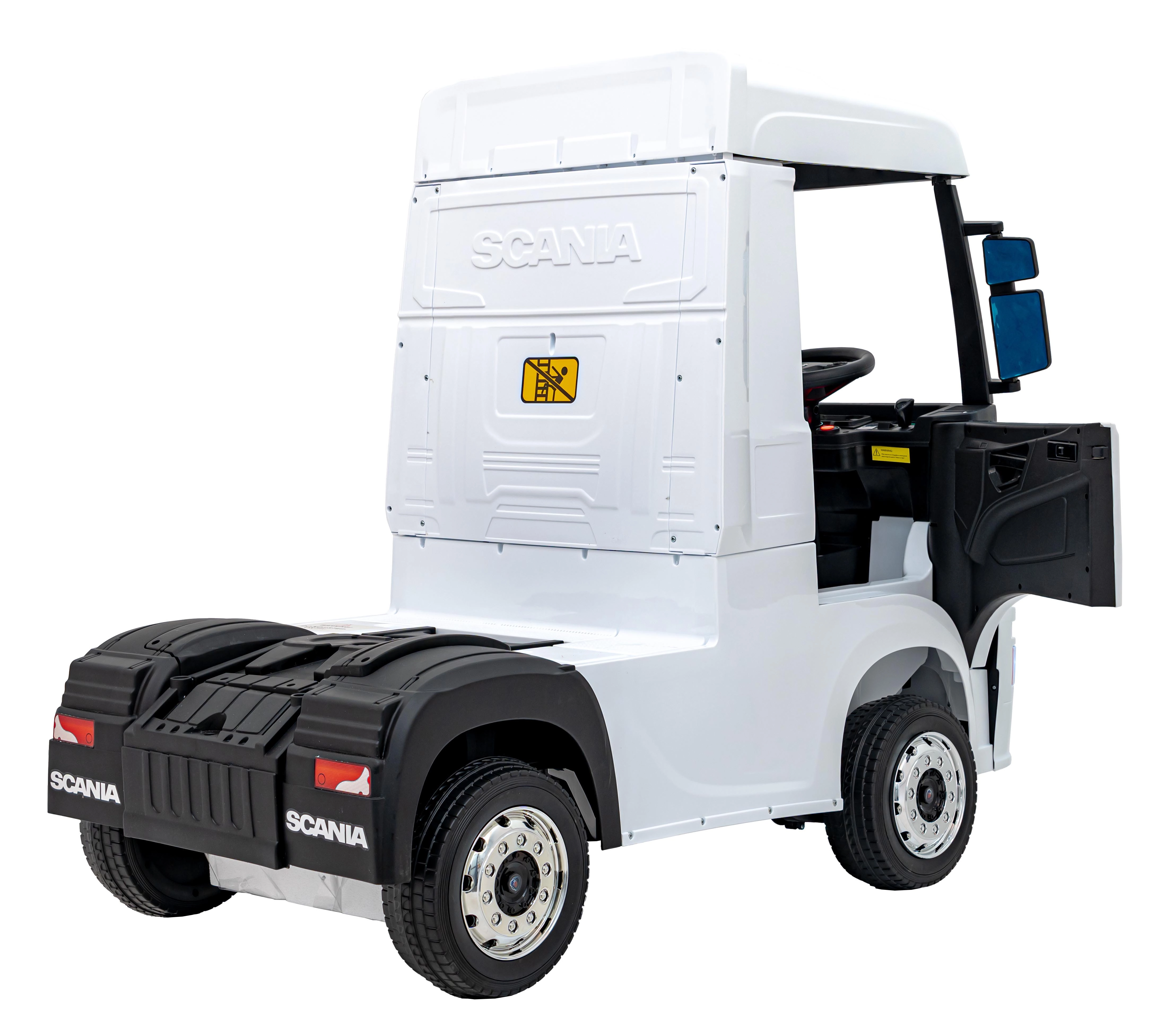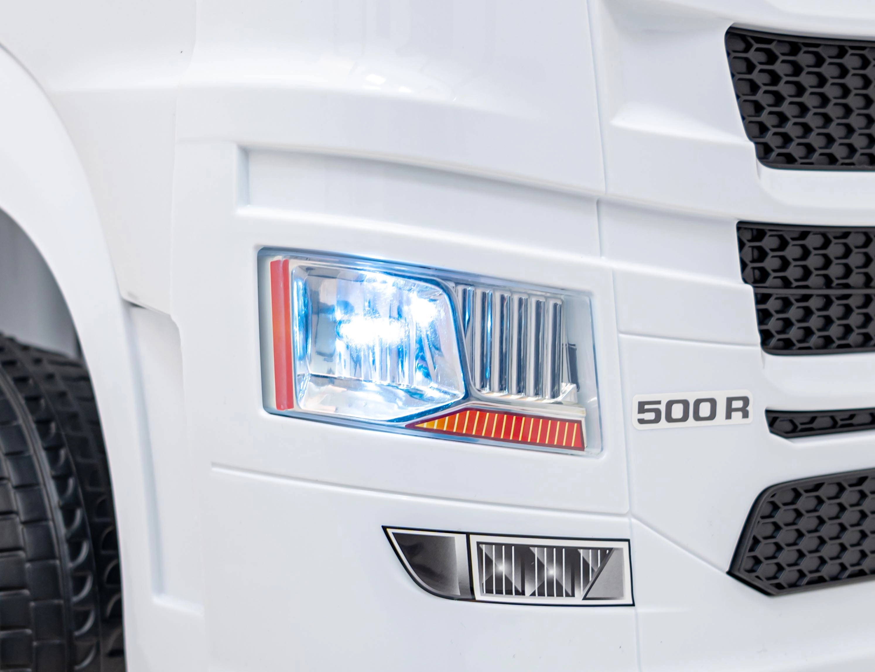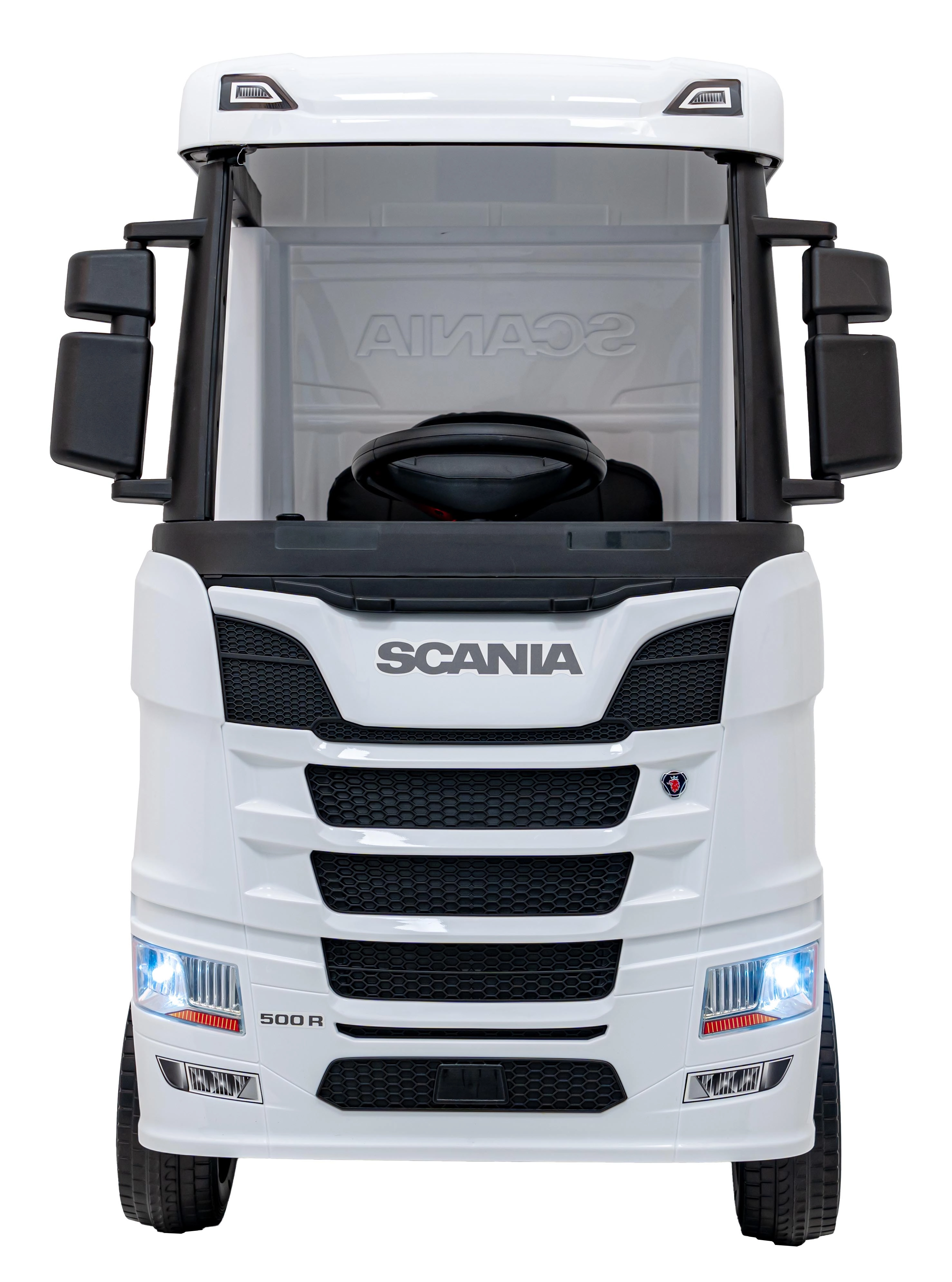 Stylový elektrický kamion SCANIA R‑SERIES je navržen pro malé řidiče, kteří milují velké stroje. Díky pohonu 4x35 W a pomalému rozjezdu je jízda plynulá a bezpečná, zatímco přední LED světla a otevírací dveře podtrhují realistický vzhled skutečného tahače.