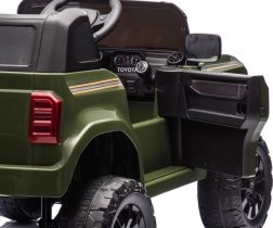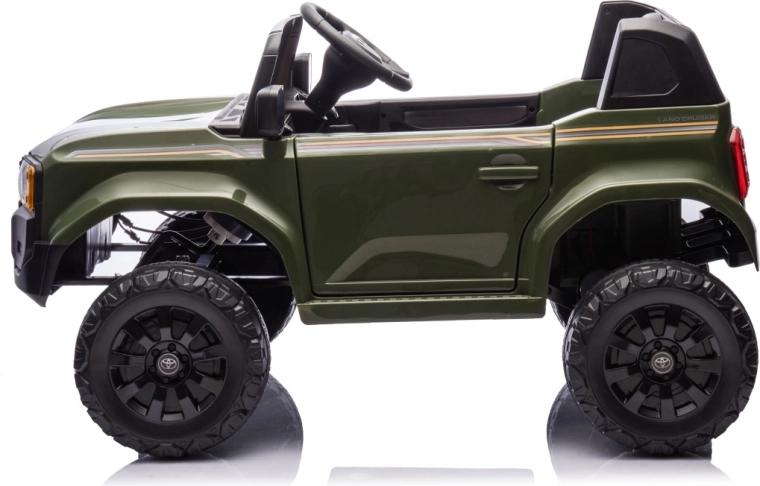 Stylové dětské autíčko TOYOTA LAND CRUISER PRADO v zelené barvě nabídne dětem realistický zážitek z jízdy. Pohon zajišťují dva motory, napájené 12V/7Ah akumulátorem, pro plynulý rozjezd nechybí soft start. Díky pěnovým kolům EVA, otevíracím dveřím a LED světlům je jízda pohodlná a bezpečná. Rodiče ocení dálkové ovládání 2,4 GHz s tlačítkem nouzového STOP. Hudbu zajistí MP3, Bluetooth a USB, o komfort se postará sedadlo z ekokůže s bezpečnostními pásy.