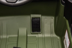 Pěnová kola EVA (24 × 9 cm) garantují tichou a komfortní jízdu i na hrubším povrchu. Funkční přední LED světla s vypínačem, otevírací dveře a zvýšený podvozek s 17cm světlou výškou dodávají autíčku realistický charakter. Přehled o energii udrží indikátor nabití.