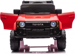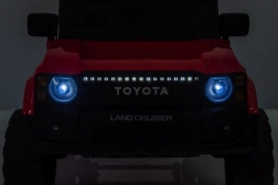 Stylové dětské autíčko licencované TOYOTA Land Cruiser Prado v atraktivní červené barvě nabídne dětem maximální zábavu i pohodlí. Díky baterii 12V, dvěma motorům a pěnovým kolům EVA zvládne jízdu po různých površích. Rodiče ocení dálkové ovládání 2,4 GHz s nouzovým tlačítkem Stop, děti zase LED světla, otevírací dveře, audio panel s Bluetooth/USB/MP3 a sedadlo z ekokůže s bezpečnostními pásy.