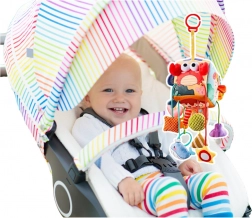 Díky praktické závěsné sponě lze kostku snadno připevnit na kočárek nebo postýlku, což umožňuje pohodlné využití doma i na cestách.