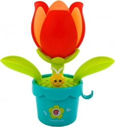 Naplněním přiložené konvičky a zalitím květiny se okvětní lístky květu začnou postupně otevírat a ukazovat sympatického žlutého tvorečka. Tento efektní moment určitě vykouzlí úsměv na tváři každého dítěte a povzbudí ho k další hře. Tato hračka nejen poskytuje skvělou zábavu, ale také rozvíjí koordinaci ruky a oka, trpělivost a pochopení příčinných vztahů.