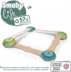 Smoby balanční dráha poskytuje jedinečnou příležitost pro děti od 2 let ke zlepšení jejich motorických dovedností a k rozvoji smyslového vnímání. Dráha se skládá ze čtyř dlouhých panelů o délce 70 cm s různorodou texturou a čtyř podstavců pro jejich uchycení. Díky možnosti libovolného uspořádání lze vytvořit až 3,5 metru dlouhou trasu, což nabízí nekonečné možnosti pro hru.