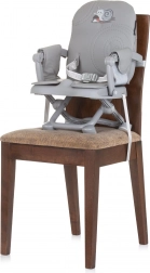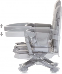 Židličku snadno připevníte pásy ke standardní kuchyňské židli, nastavíte do 3 výškových poloh a použijete odnímatelný podnos pro pohodlné krmení. Hladké plastové povrchy umožňují rychlé čištění. Konstrukce je lehká (2,7 kg) a skladná pro snadné přenášení a ukládání.