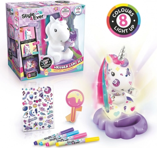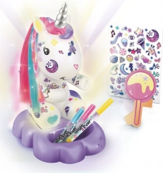 Součástí balení je svítící figurka jednorožce na podstavci, 4 barevné fixy pro malování a dozdobení, nálepky a připínatelné, barevné pramínky vlasů pro jedinečný vzhled. Lampička svítí 8 barvami, takže snadno vytvoří útulnou atmosféru ke čtení, usínání i hraní. Díky jednoduchému návodu je tvoření snadné a zábavné.