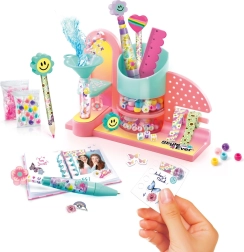 Stolní set na psací potřeby Style4Ever promění každý pracovní stůl v kreativní zónu. Děti si mohou personalizovat stojan na tužky a další pomůcky pomocí nálepek, korálků a dekoračních sáčků. Vše je navrženo tak, aby byl výsledek jedinečný a praktický.