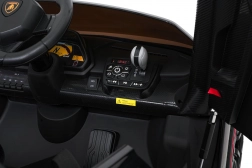 Splňte dětský sen o supersportu: licencované elektrické autíčko LAMBORGHINI Veneno v elegantní černé má 4×45 W motory, dvojitou 12 V baterii, otevírací výklopné dveře, LED světla vpředu i vzadu a pohodlné sedadlo z eko kůže s bezpečnostními pásy. Rodičovský 2,4 GHz dálkový ovladač s tlačítkem Stop a volbou 3 rychlostí zajišťuje bezpečnou zábavu. Panel médií nabízí Bluetooth, USB, MP3 i FM rádio.