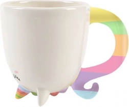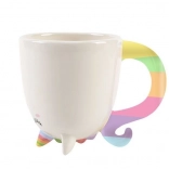 Bílá keramika s duhovým uchem/ocáskem a jemnou tvářičkou působí roztomile a originálně. Ideální dekor i každodenní hrnek.