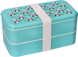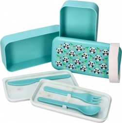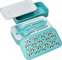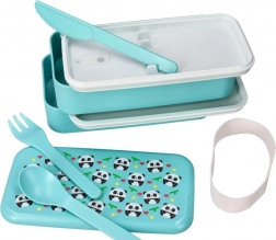 Roztomilý svačinový box s motivem pandy a objemem 1,2 l je ideální pro obědy do školy, práce i na cesty. Nabízí dva oddělené patra, praktický příbor včetně vidličky, nože a lžičky a bezpečné upevnění elastickým páskem. Vhodný do mrazáku i pro ohřev v mikrovlnné troubě bez víčka (max. 100 °C).