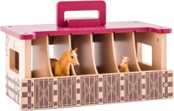 Stáj je vyrobena z kvalitního dřeva a je navržena tak, aby vydržela každodenní hraní. Šest samostatných boxů umožňuje přehledné uložení figurek koní a doplňků. Ideální jako dárek pro malé milovníky zvířat a koní.