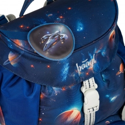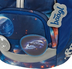 Ultralehký školní batoh BAAGL Airy Vesmír s hmotností pouhých 750 g je ideální pro prvňáčky a mladší školáky. Nabízí ergonomicky tvarovaná záda s AIRFLOW ERGO systémem, plně nastavitelné popruhy a podpůrné pásy pro rovnoměrné rozložení zátěže. Díky Magnetic Click zapínání, voděodolnému recyklovanému materiálu a reflexním prvkům zajišťuje komfort, bezpečí i styl s měnitelnými odznáčky.