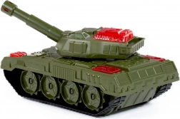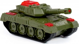 Objevte zábavu s realistickým plastovým tankem, který vypadá jako skutečné bojové vozidlo. Má detailní imitaci pásů, přičemž se plynule pohybuje díky skrytým kolečkům. Otáčivá věž a nastavitelný kanón zaručují akční hru. Odolné materiály a poutavý armádní design potěší každého malého milovníka techniky.