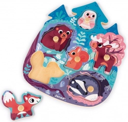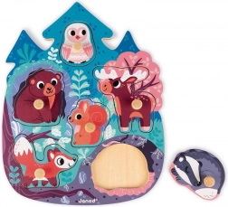 Tato barevná dřevěná vkládačka je ideální první skládačka pro nejmenší. Děti si při hře trénují koordinaci oko–ruka, učí se rozpoznávat tvary a objevují svět lesních zvířat. Každý dílek má praktickou dřevěnou úchytku pro snadné uchopení malými ručičkami.
