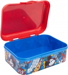 Elegantní plastová krabička na svačinu ve správné velikosti, aby si ji děti mohly snadno vzít do parku, školy nebo na výlet, s oblíbeným motivem Mickey Mouse.
