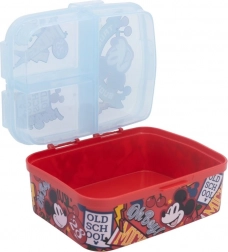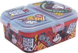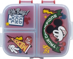 Svačinový box se pyšní výrazným motivem Mickey Mouse, který dodává interaktivní zážitek při jídle.