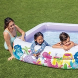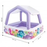 Nafukovací dětský bazének INTEX s barevným dinosauřím potiskem je ideální pro horké dny. Díky odnímatelné nafukovací stříšce si děti užijí vodní hrátky ve stínu a rodiče ocení snadnou obsluhu i bezpečné provedení. Rozměry 157 × 157 × 122 cm a kapacita 295 l nabízejí dostatek prostoru pro osvěžení i hraní.