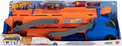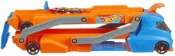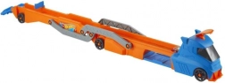 Připravte se na úžasné závody a kaskadérské kousky s tahačem Hot Wheels. Tento obrovský tahač dokáže naložit až devět angličáků, které díky prodloužitelné korbě na délku 76 cm sepíšete jako blesk. Kabina slouží jako odpalovací zařízení a umožňuje autíčkům vyrážet na šílené jízdy za nové dobrodružství.
