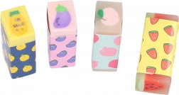 Veselé mazací gumy s motivem ovoce zpříjemní každé psaní i kreslení. Ideální do školy i kanceláře, v praktickém balení pro sdílení nebo doplnění penálu. Vyberte si z motivů meloun, ananas, lilek a broskev.