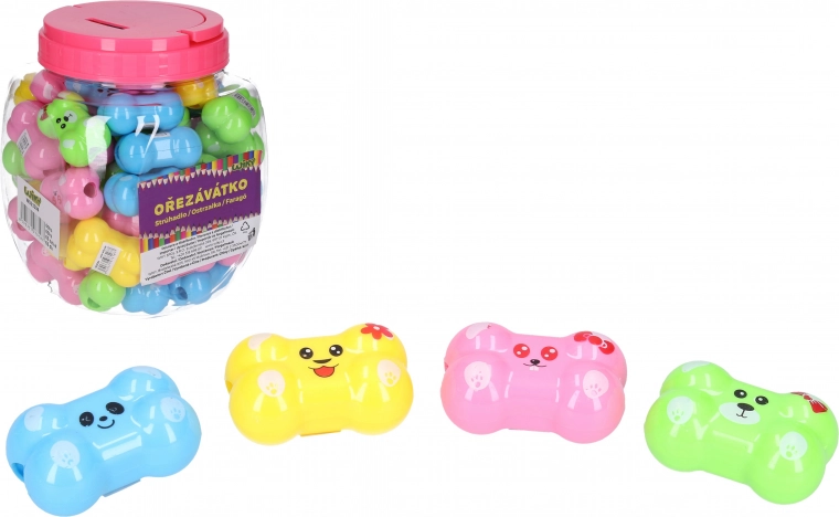 Praktické ořezávátko ve tvaru kosti pro jednu tužku vyniká hravým designem a kompaktní velikostí. Nabízí čtyři atraktivní barvy – zelenou, žlutou, růžovou a modrou – a je ideální pro školu, kancelář i domácnost.