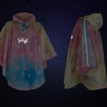 Bezpečnost při chůzi do školy i na výletech podporují integrované reflexní prvky. Díky chytře řešenému střihu se pončo snadno obléká i přes batoh nebo aktovku. Po použití jej jednoduše složíte do zatahovacího sáčku, který barevně ladí s veselým potiskem.