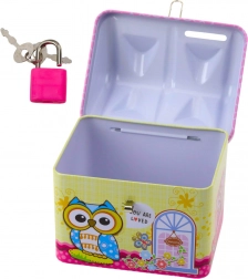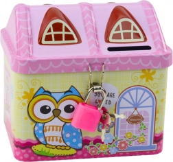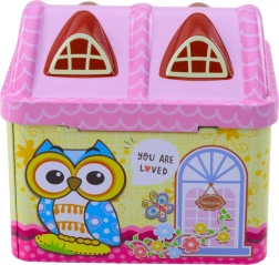 Pokladnička ve tvaru domečku s motivem sovy v pastelových barvách osloví každé dítě.