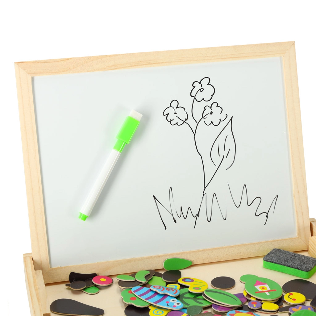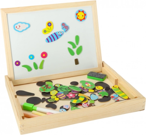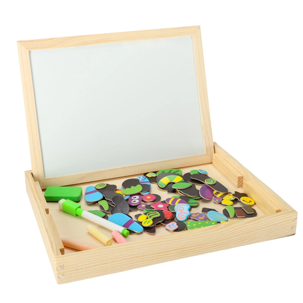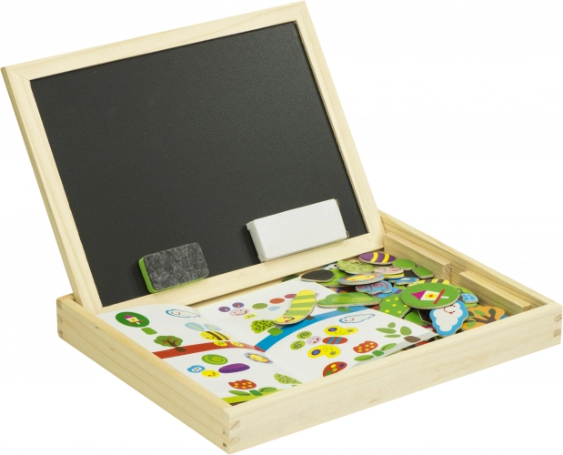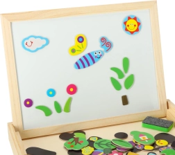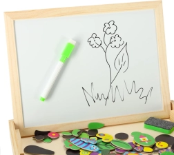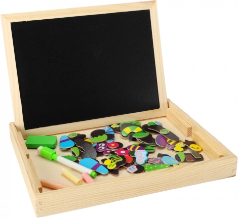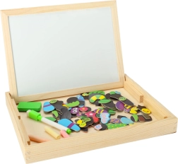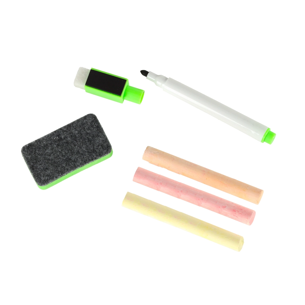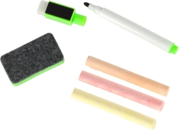 - Balení obsahuje: oboustrannou tabuli, 100 magnetů, barevné křídy, houbičku, fixy
