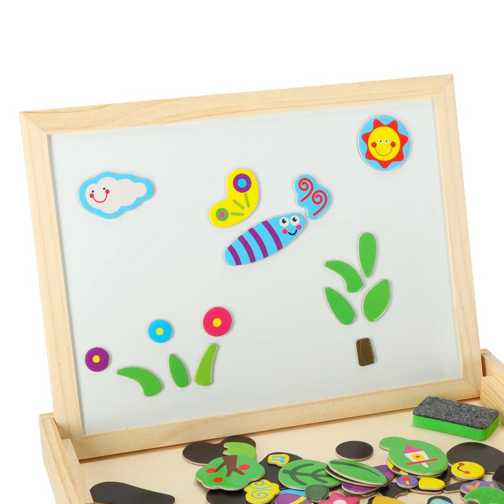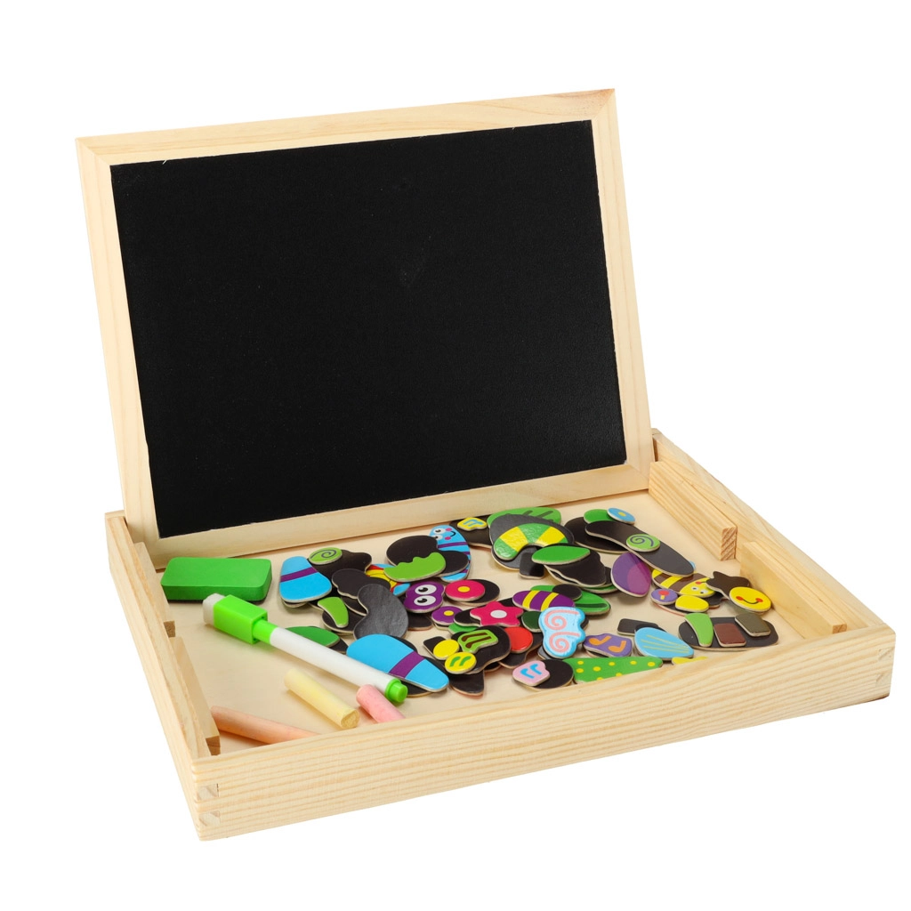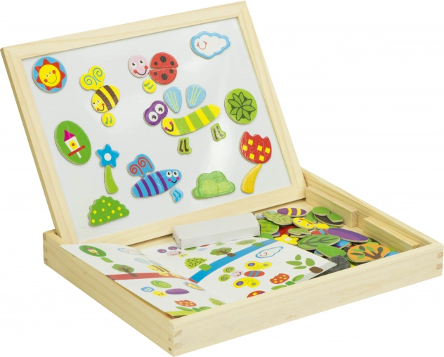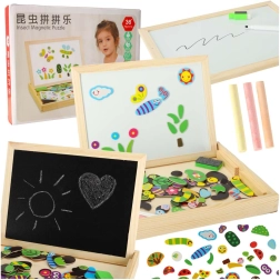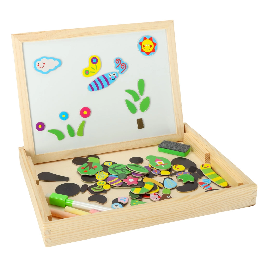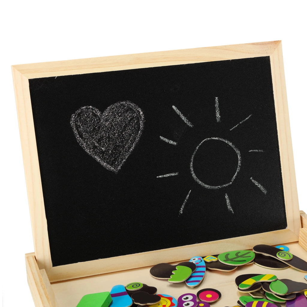 - Balení obsahuje: oboustrannou tabuli, 100 magnetů, barevné křídy, houbičku, fixy