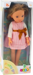 Panenka Pretty Girl je highlightem pro každou dívenku díky svému krásně tvarovanému obličeji s jemným úsměvem a velkýma očima. Má měkké a na dotek příjemné vlasy, které lze česat a stylovat. Oblečená je do růžových šatů s bílými pruhy, doplněných bílými rukávy a zdobenou hnědou mašlí v pase. Tato elegantní kombinace je doplněna klasickými bílými botami. Oblečení lze svlékat, což umožňuje hru na převlékání a vytváření vlastních módních kreací.