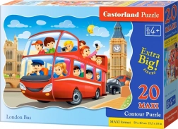 Objevte zábavné podlahové MAXI puzzle s motivem londýnského autobusu, ideální pro malé děti. Díky velkým dílkům a tvarovanému okraji se puzzle snadno skládá, rozvíjí jemnou motoriku, trpělivost a prostorovou představivost. Rozměr po složení je přibližně 59 × 40 cm.