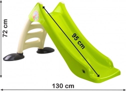 Dopřejte dětem nekonečnou zábavu na zahradě se stylovou limetkovou skluzavkou. Stabilní konstrukce, rychlá a snadná montáž a bezpečné zaoblené hrany zaručují pohodové a bezpečné hraní na čerstvém vzduchu. Třístupňový žebřík usnadní výstup a odolné plastové materiály vydrží náruživé každodenní používání.