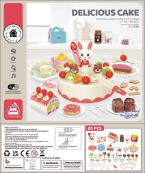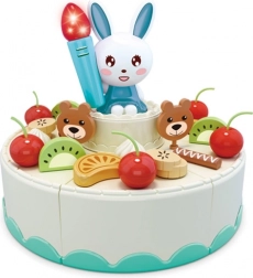 Postavte si svou vlastní cukrárnu a uspořádejte nezapomenutelnou oslavu! Velký set WOOPIE nabízí vše, co malí hostitelé potřebují: dort a koláč na krájení, talířky, příbory, nápoje i krabičku na zbylý dort. O atmosféru se postará svíčka s králíčkem, která svítí, hraje a po zafoukání se automaticky vypne.