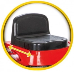 Pro maximální komfort má traktor 6stupňově nastavitelnou sedačku (vpřed–vzad), klakson na volantu a řetězový pohon na zadní kolo pro plynulý záběr. Přední otočná náprava usnadňuje manévrování a tažný hák umožní připojit přívěs nebo jiné příslušenství pro ještě více herních scénářů.