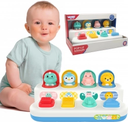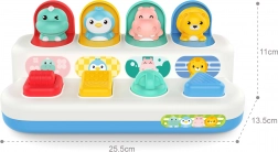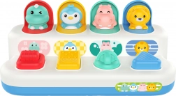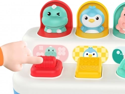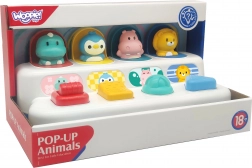 Tato barevná pop-up hračka od značky WOOPIE nabízí kombinaci učení a zábavy pro děti od 18 měsíců. Každé zvířátko se ukáže po stisknutí tlačítka, otočení kolečka nebo přepnutí páčky – děti si tak přirozeně procvičují koordinaci oko–ruka a chápání příčiny a následku.