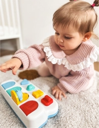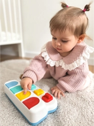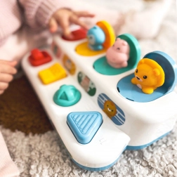 Tlačítka, kolečko a přepínač pomáhají trénovat prstíky i koordinaci oko–ruka zábavnou formou.