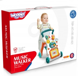 Objevte multifunkční hrající chodítko WOOPIE, které pomáhá dětem při prvních pokusech o chůzi a zároveň je motivuje k objevování světa. Chodítko je vybaveno barevnými tlačítky, knoflíky a otočnými prvky, jež přehrávají různé melodie a zvuky, čímž podporují smyslový rozvoj a koordinační dovednosti.