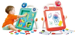 Dvoustranná tabule WOOPIE 2v1 je ideální volba pro děti od 3 let. Jedna strana slouží jako kreslicí plocha pro suchostíratelné fixy, druhá jako barevná Tetris skládačka pro rozvoj logiky a představivosti. Díky rukojeti je tabule snadno přenosná a její stabilní nožky zaručí bezpečné hraní doma i na cestách.