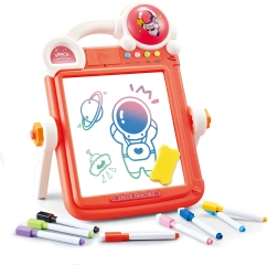 Kreslicí strana nabízí čistou, suchostíratelnou plochu, 8 barevných fixů, houbičku a 18 oboustranných karet pro opakované malování a psaní.