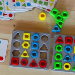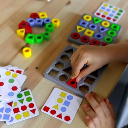 Princip hry: Hráči musí sestavit vzor na podložce podle losované karty. Je nutné dodržet jak uspořádání, tak barvy geometrických tvarů.