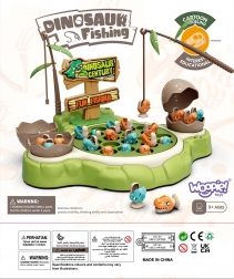 Na čelní straně najdete přepínač: uprostřed se točna pouze otáčí, v krajní poloze vpravo zní melodie doprovázející hru. Po stranách základny jsou dvě uzamykatelná dinosauří vejce, kam lze ukládat úlovky. Set obsahuje 21 dinosaurů a 2 pruty – ideální pro sourozence či kamarády.