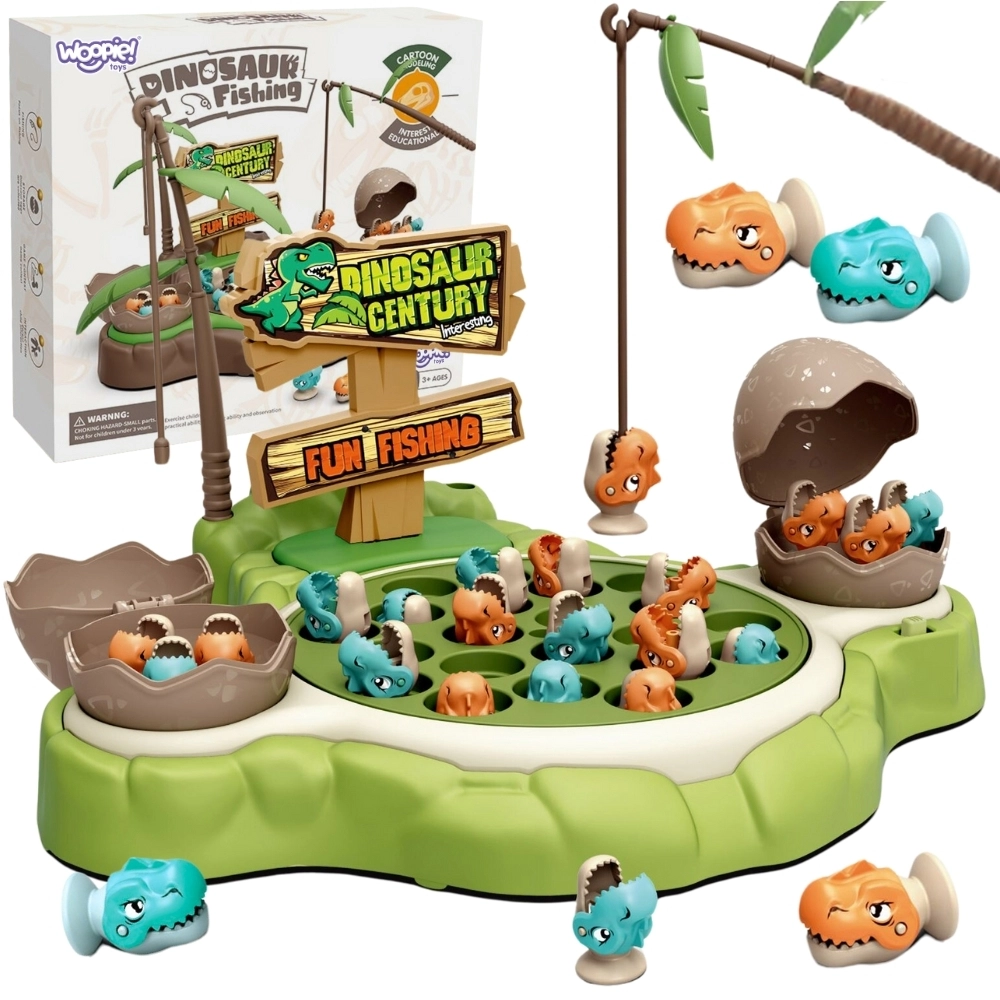 Zábavná stolní hra lov dinosauřích rybek od značky WOOPIE přináší dětem od 3 let spoustu akce a smíchu. Rotující základna s otvírajícími se otvory, magnetické pruty a figurky dinosaurů trénují jemnou motoriku, koordinaci oko–ruka i kreativitu. Dva uzavíratelné „dino vejce“ slouží jako úkryt pro ulovené dinosaury, přepínač nabídne tichý režim i příjemnou melodii pro ještě větší zábavu.