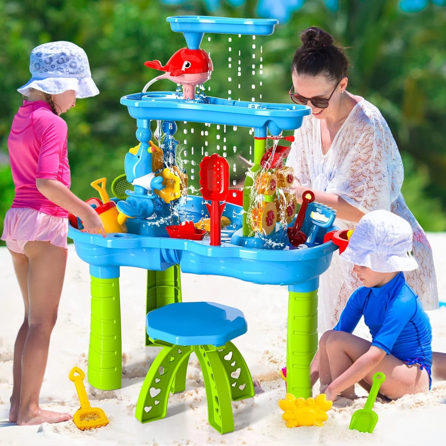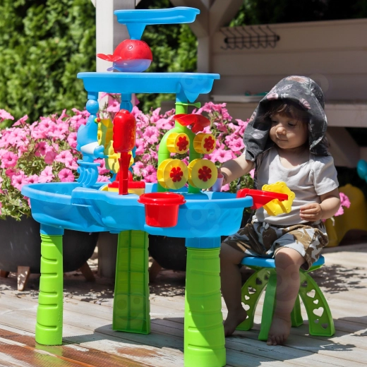 Objevte zábavu na zahradě i doma s multifunkčním stolkem WOOPIE pro hru s vodou a pískem. Nabízí 3úrovňový vodní systém, bohaté příslušenství (37 dílů), snadnou montáž a podporu smyslového a motorického rozvoje dětí.