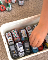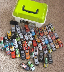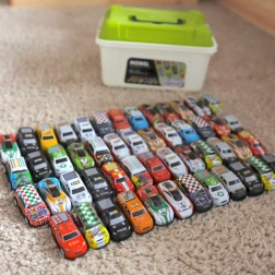 Kufřík s držadlem umožňuje snadné přenášení a uložení autíček po skončení hraní.