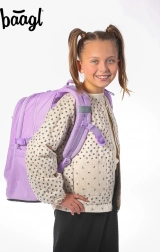 Batoh Core Levandule s iridescentní přední kapsou vytváří moderní vzhled a nabízí dostatek prostoru pro organizaci školních potřeb.