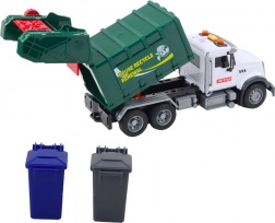 Realistické popelářské auto v měřítku 1:14 se světelnými a zvukovými efekty, pohyblivými prvky a dvěma koši na třídění odpadu. Robustní plastové zpracování, baterie v balení a jednoduché ovládání tlačítky na střeše zaručí dlouhou a bezpečnou zábavu.