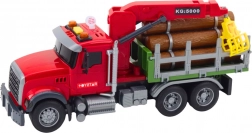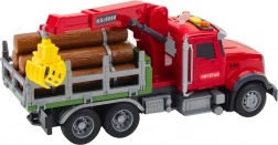 Tento červený lesnický náklaďák je připraven na nakládku a převoz dřeva. Zadní přívěs s pohyblivým jeřábem a chapadlem umožní snadno zvedat a přemisťovat klády, které jsou součástí sady. Ovládání ramen jeřábu probíhá tlačítky na vozidle, takže děti si užijí realistickou a bezpečnou hru.