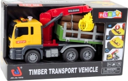 Tato žlutá dřevová souprava s funkčním jeřábem v měřítku 1:14 přináší dětem autentický zážitek z práce se specializovanou technikou. Ovládání ramen jeřábu je řešeno tlačítky – ruka se zvedá a umožňuje snadné naložení a vyložení přiložených klád. Interaktivní světla a zvuky (klakson, couvací tón, alarm) dodávají hře na realističnosti.