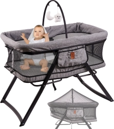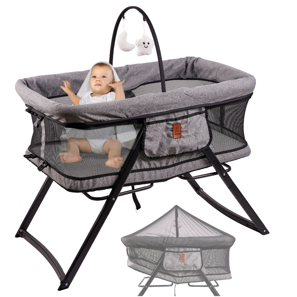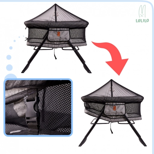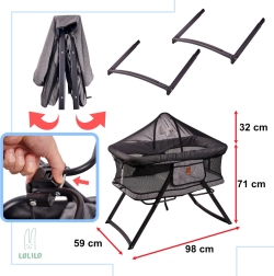 Moderní dětská postýlka Lulilo Vojago s funkcí kolébky je ideálním místem pro odpočinek novorozence. Jemné houpání napomáhá rychlejšímu usínání a miminko přirozeně uklidňuje. Neutrální barvy skvěle zapadnou do každého interiéru a díky snadnému složení ji pohodlně vezmete na dovolenou či k prarodičům.