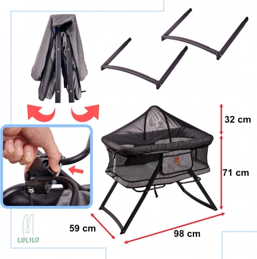 Postýlka je navržena pro miminka od narození do cca 6 měsíců (do 10 kg). Po složení zabere minimum místa, takže je ideální jako cestovní řešení s důrazem na bezpečí, komfort a jednoduchou obsluhu.